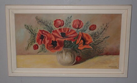 Obraz květin - Vlčí máky 1. Signován vpravo dole - viz foto. Autorem je malíř Rybenský.