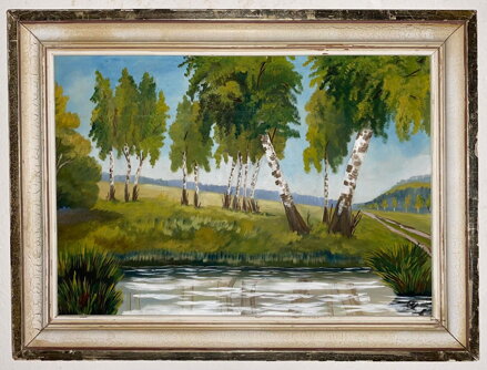 Obraz - Břízy u rybníka. Signován vpravo dole - viz foto.