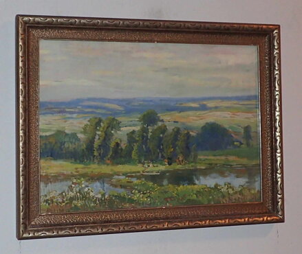 Obraz - Řeka v krajině. Autorem je malíř Zdeněk Nemastil. Signován vpravo dole - viz foto. Obraz galerijní kvality. Na první pohled je vidět, že Zdeněk Nemastil si dal na tomto obraze záležet, jedná se o velmi kvalitní dílo.