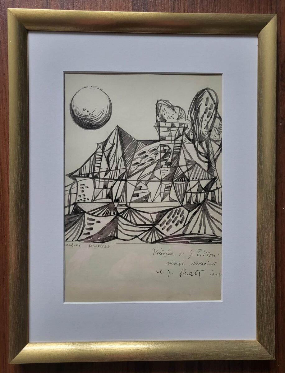 Rozměry včetně rámu cca 43 cm x 33 cm. Obraz je adjustován do nového rámu. Kresba tuší na papíře. Celkový stav - viz foto.