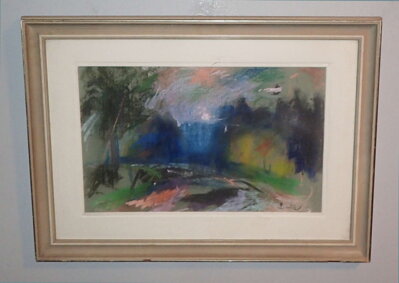 Rozměry včetně rámu cca 64 cm x 47 cm. Rám je zdobený, místy má otluky. Křídový pastel na papíře. Obraz je zasklený. Celkový stav - viz foto.