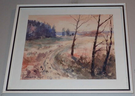 Rozměry včetně rámu cca 53 cm x 43 cm. Rám je zdobený, místy má otluky. Akvarel na papíře. Obraz je zasklený. Celkový stav - viz foto.