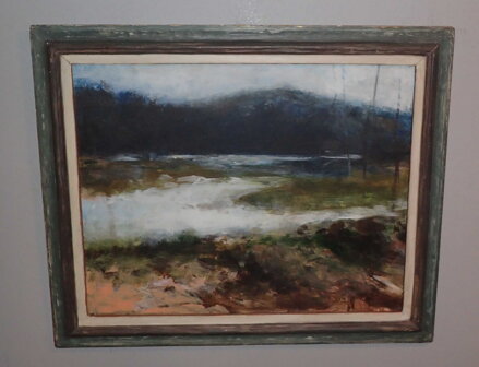 Obraz - První sníh. Obraz není signovaný, byl však vykoupen spolu s dalšími obrazy z pozůstalosti tohoto autora.