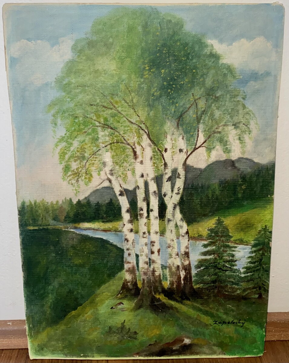 Obraz - Břízy u řeky. Signován vpravo dole - viz foto. Autorem je malíř Zápotocký.