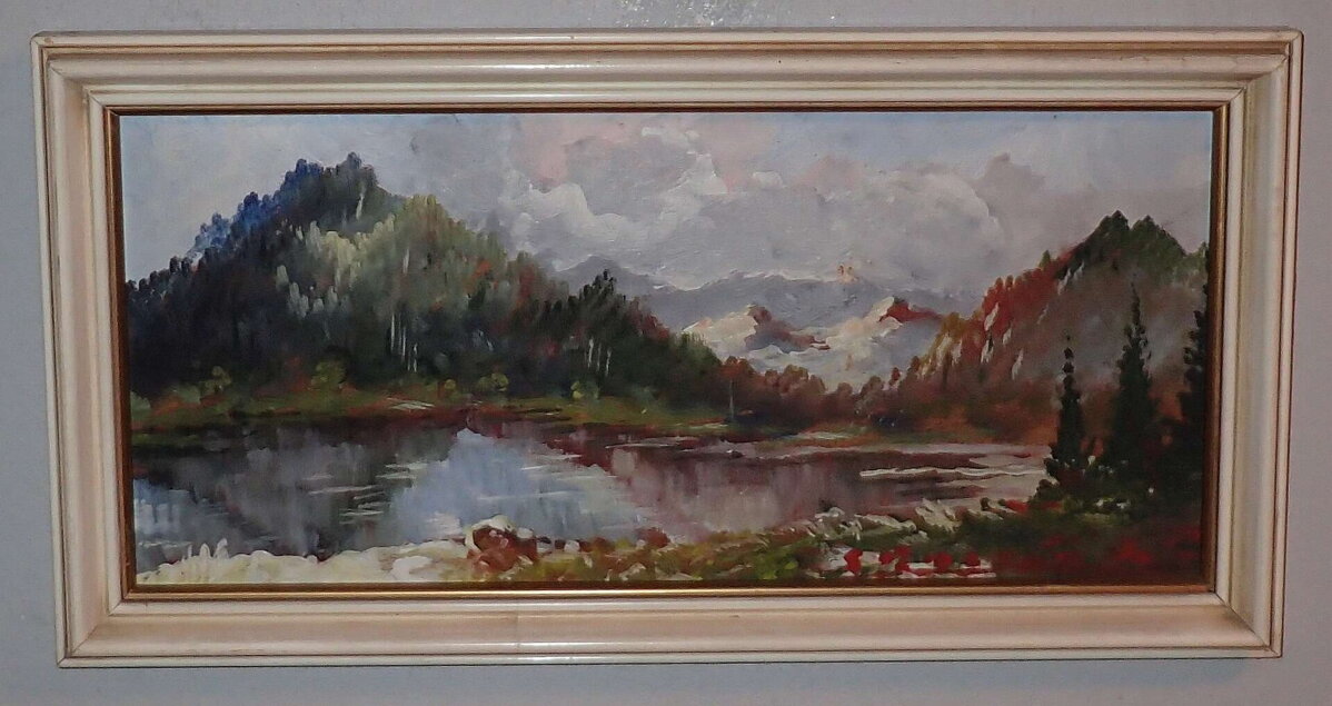 Rozměry včetně rámu cca 50 cm x 25 cm, rám je zdobený, místy má otluky. Olej na desce. Celkový stav - viz foto.