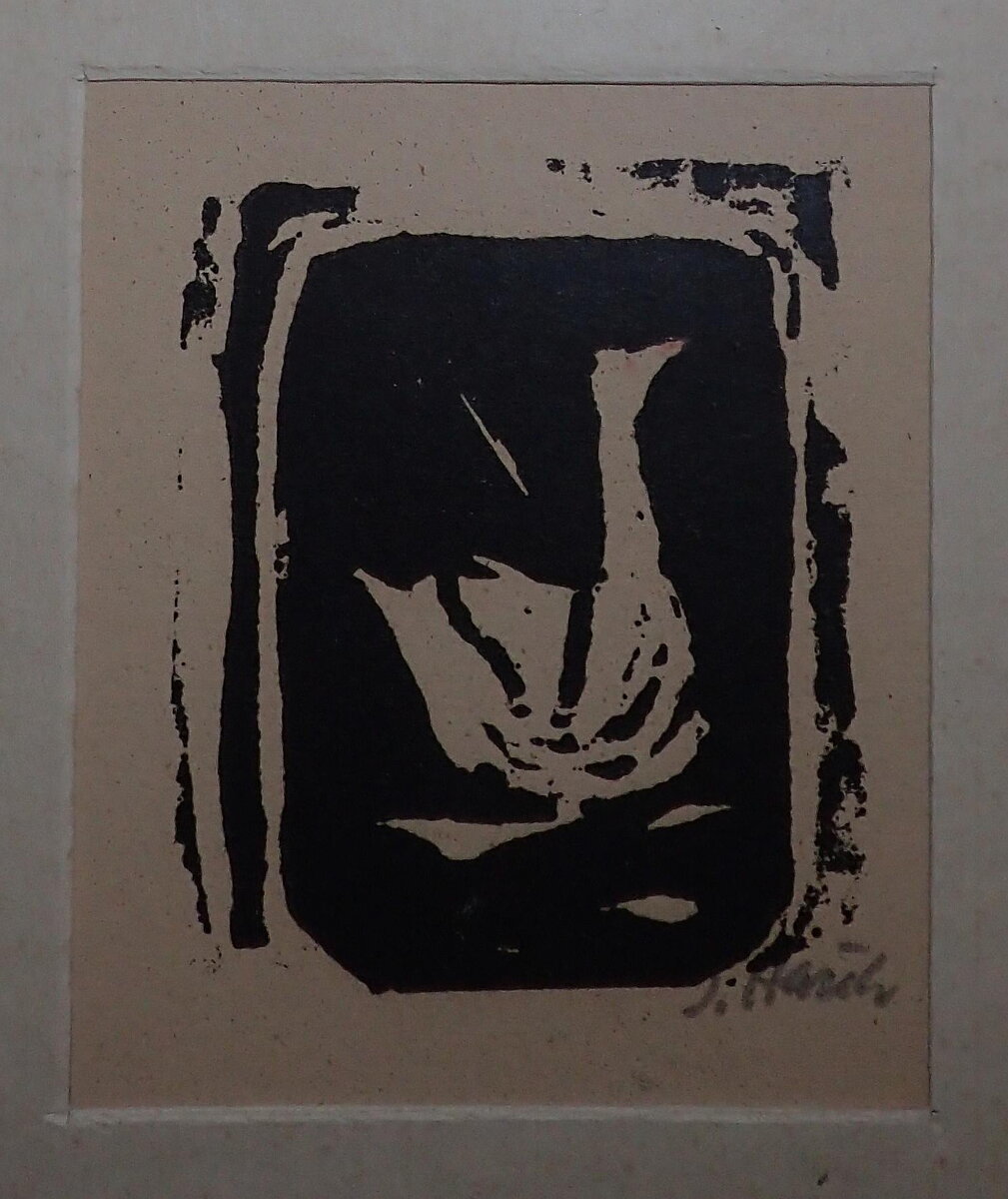 Rozměry včetně rámu cca 27 cm x 23 cm, rám je úzký, místy má otluky. Linoryt či kamenoryt na papíře. Obraz je zasklený. Celkový stav - viz foto.