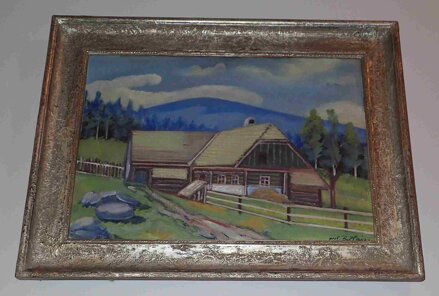 Obraz - Roubenka v podkrkonoší. Signován vpravo dole - viz foto.
