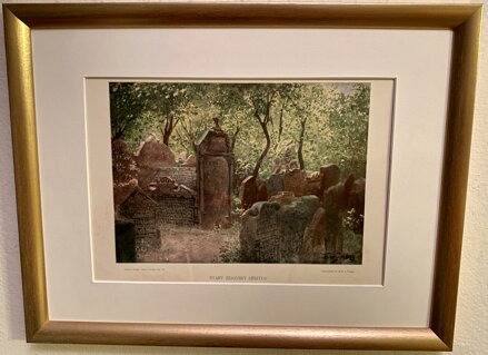Obraz - Starý židovský hřbitov (Pragensia). Jedná se o reprodukci obrazu od známého malíře Václava Jansy. Signován a datován vpravo dole - viz foto. Název díla uprostřed dole - viz foto.