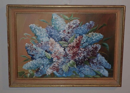 Rozměry včetně rámu cca 57 cm x 42 cm, rám je mohutný, zdobený, místy má otluky. Olej na kartonu. Obraz je zasklený. Celkový stav - viz foto.
