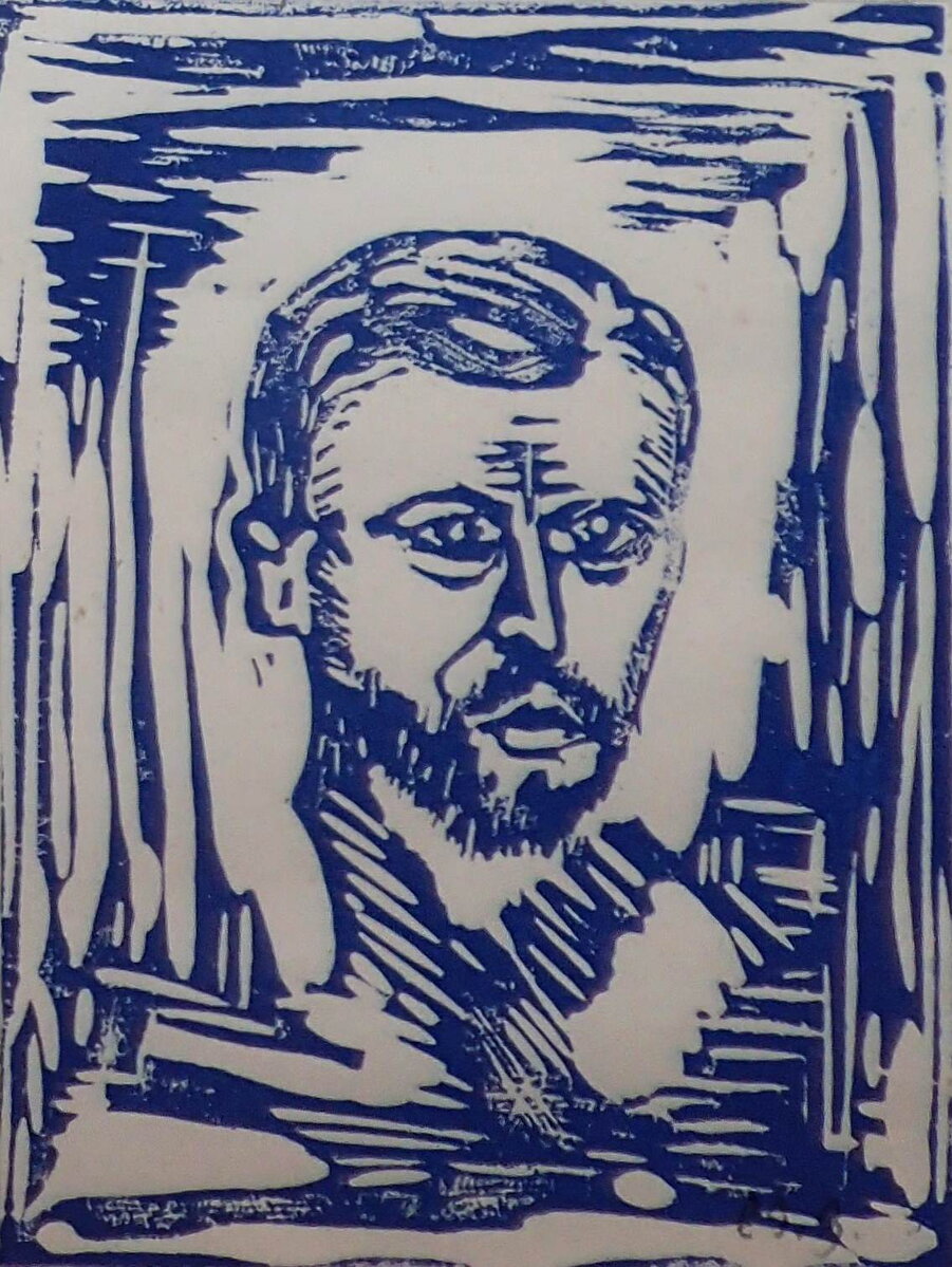 Rozměry včetně rámu cca 29 cm x 23 cm. Rám je zdobený, místy má otluky - viz foto. Barevný linoryt na papíře. Obraz je zasklený. Celkový stav - viz foto.