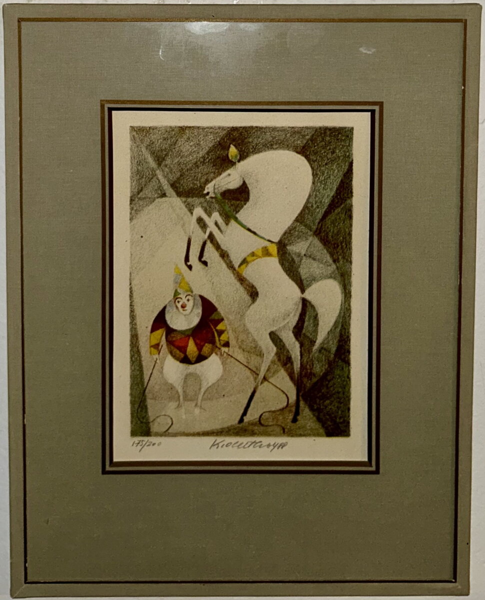 Signovaná barevná litografie - Kůň v cirkusu. Autorem je vyhledávaný a ceněný malíř Karel Oberthor. Signována a datována uprostřed dole - viz foto. Číslována 175/200 vlevo dole - viz foto.