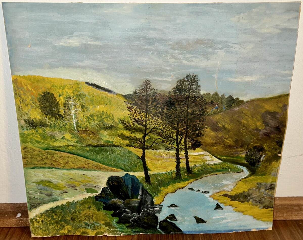 Rozměry cca 41 cm x 37 cm. Olej na kartonu. Malba je místy podrápaná. Celkový stav - viz foto.