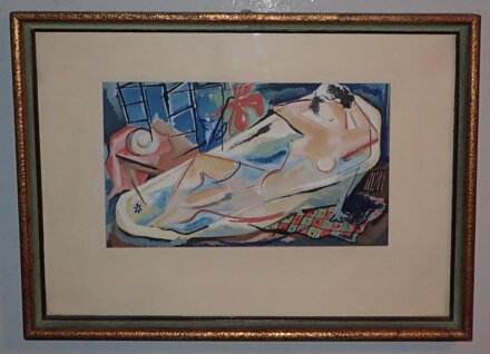 Obraz - Akt dívky ve vaně. Autorem je malíř Jan Brukner. Signován a datován vpravo dole - viz foto. Expresionistický styl malby, ladné křivky.