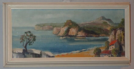 Obraz - Sutomore Jaderské moře. Signován a datován vpravo dole - viz foto. Autorem je malíř Jiří Vetešník. Zezadu obrazu je uveden autor, název díla a rok - viz foto.