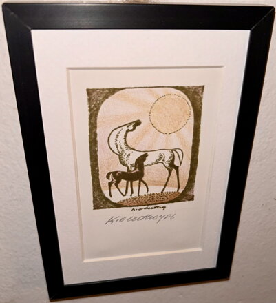 Signovaná barevná litografie - Klisna s hříbětem. Autorem je vyhledávaný a ceněný malíř Karel Oberthor. Signována a datována uprostřed dole - viz foto.